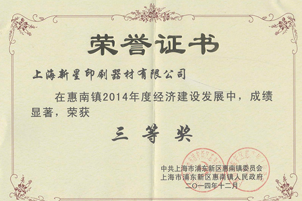 惠南镇2014年经济发展三等...